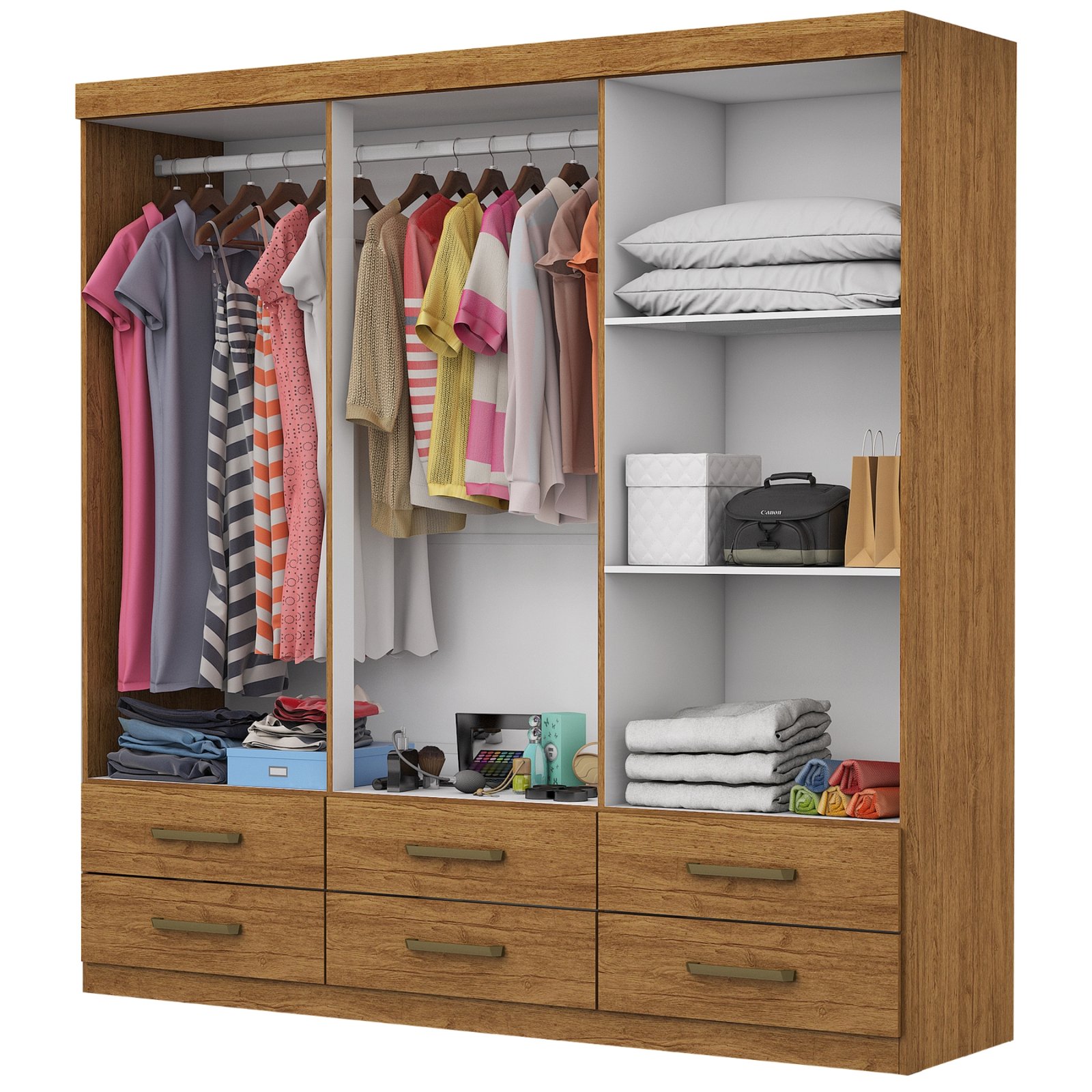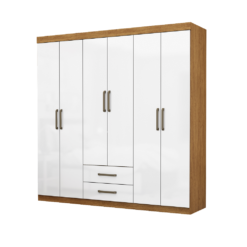 Guarda-Roupa 6 Portas(Sem Espelho/Sem Pés)Dallas 1,53 m Cinamomo/Branco – CARIOCA MÓVEIS