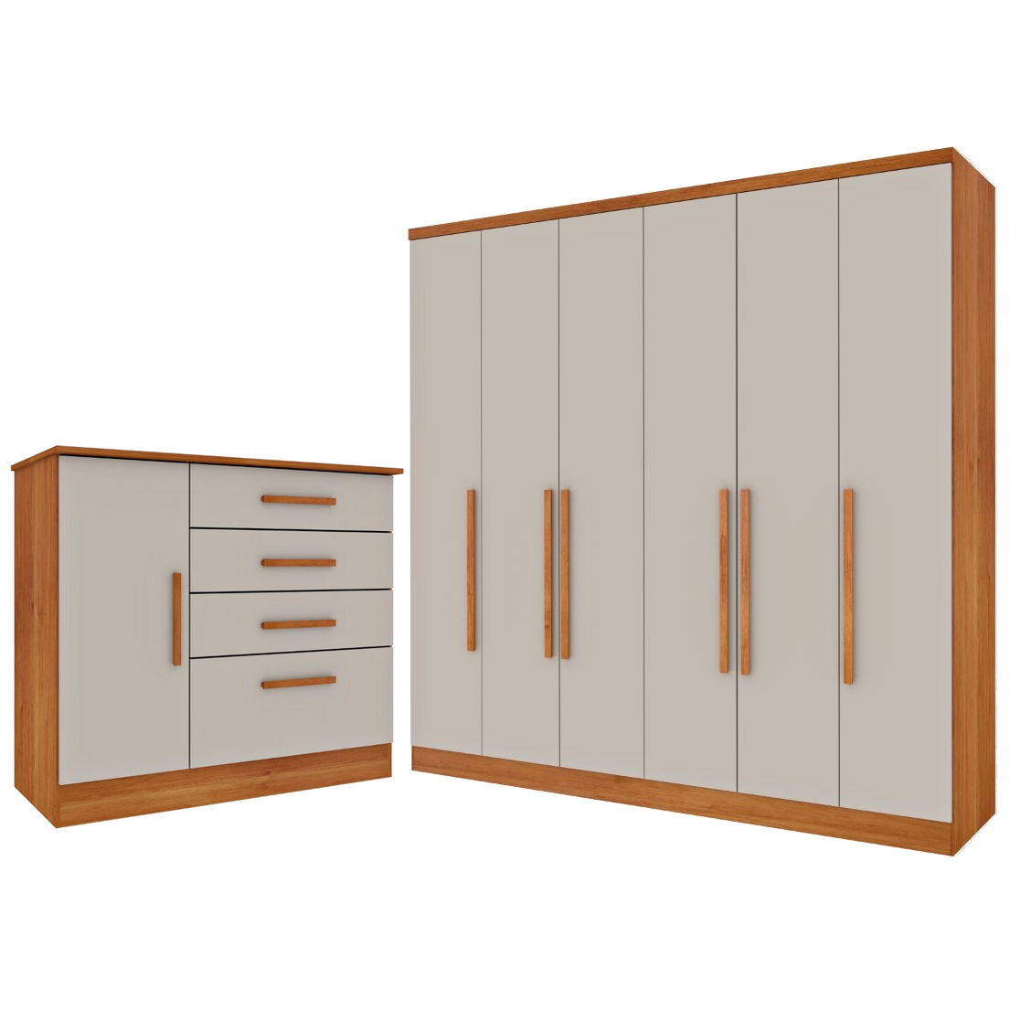 Guarda-Roupa 6 Portas Veneza/Padova + Cômoda Chicago/Berlim Cinamono/Off White – TCIL