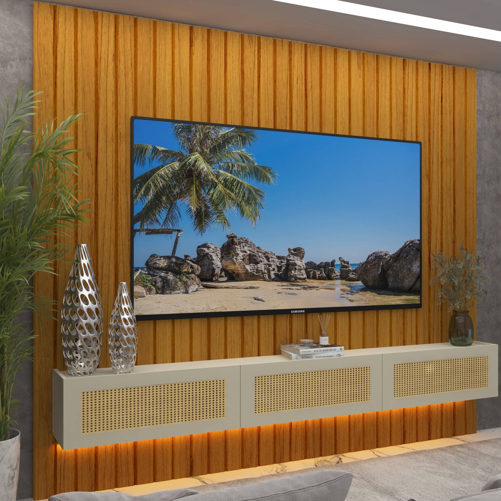 Home Suspenso até 85″ Majestade 230 Naturale com Nicho Native Off White – GELIUS