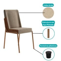 Kit 2 Cadeiras Hug 1749 Rosê Cobre/Linho Areia/Corino Caramelo – CARRARO MÓVEIS