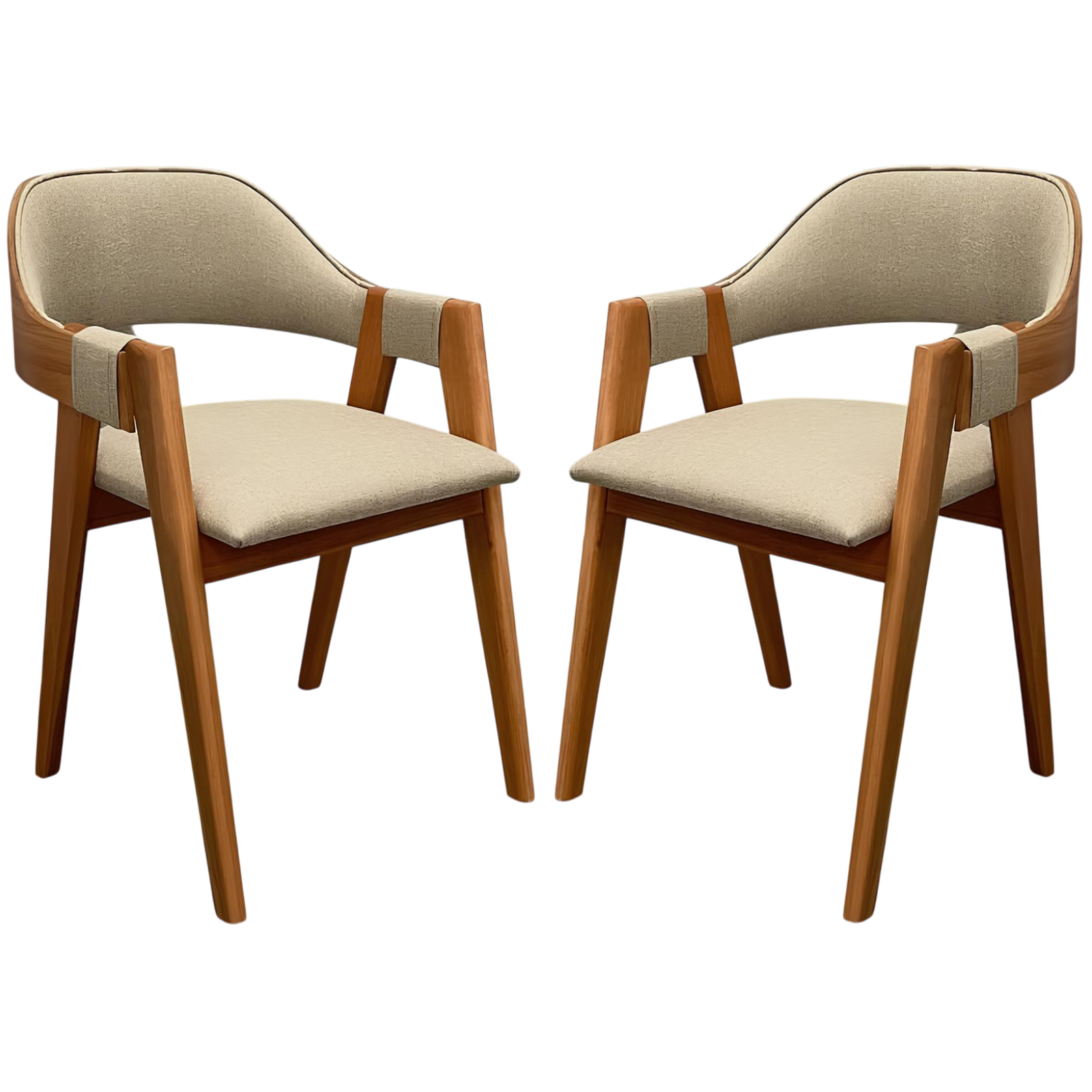 Kit 2 Cadeiras Pérola Mel Laminado/Linho Bege – WJ DECOR