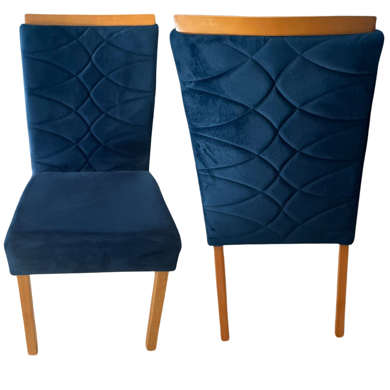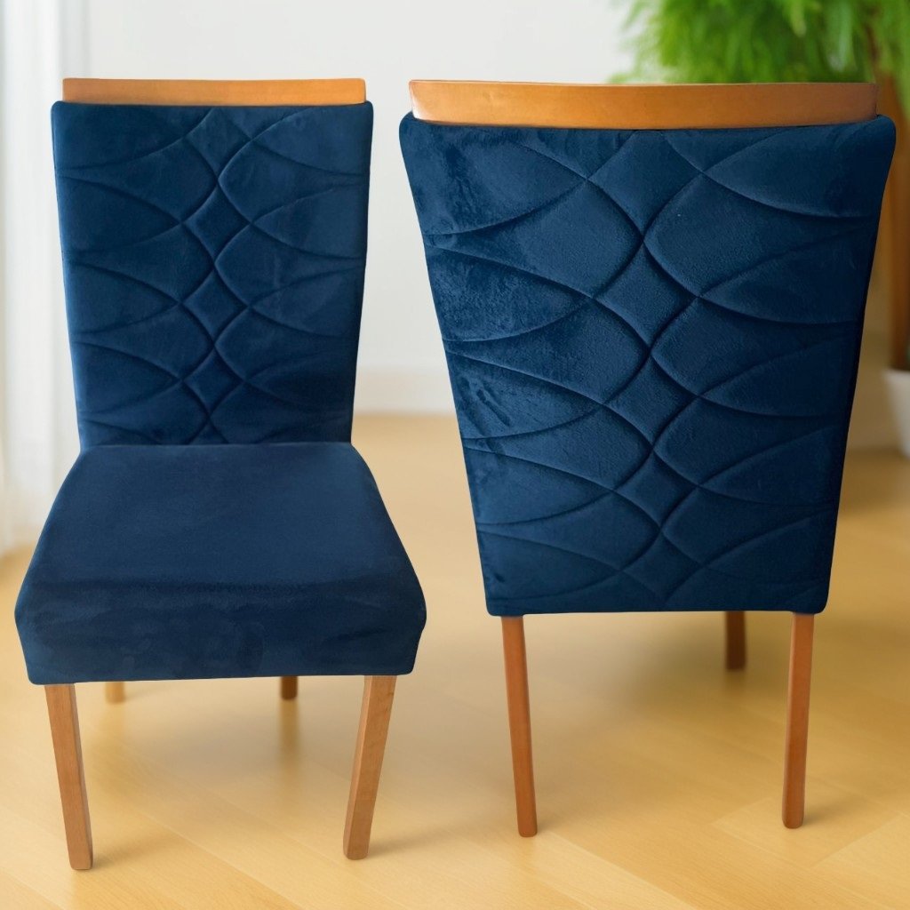 Kit 2 Cadeiras Safira Mel/Veludo Azul – WM DECOR