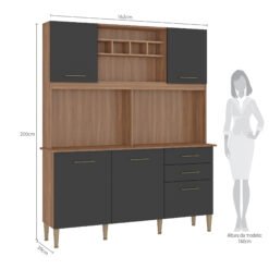 Kit Cozinha Alice/Laura 1,62 Manchester/Grafite- FELLICCI