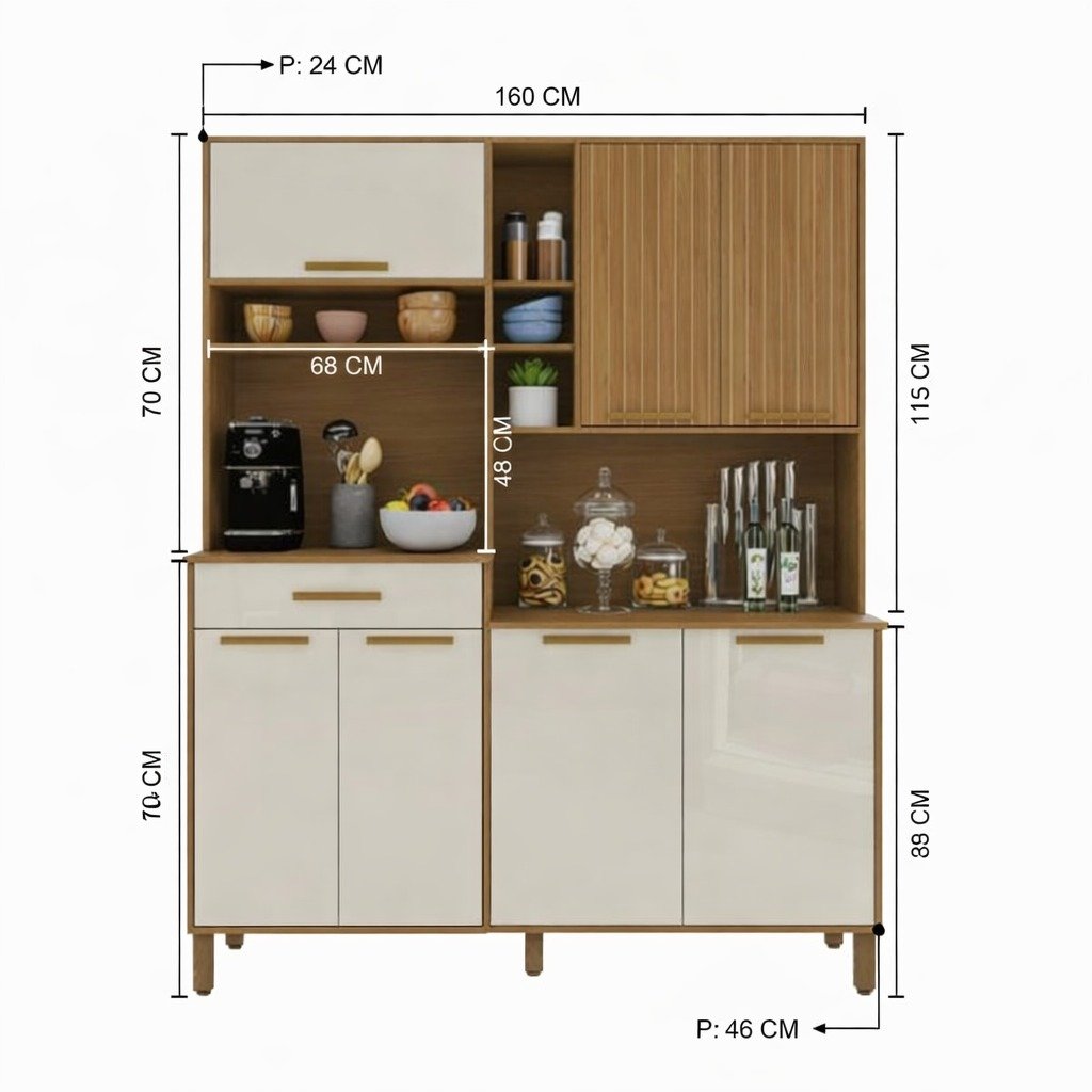 Kit Cozinha Braga 1,60 m Freijó/Off White – INDÉKES