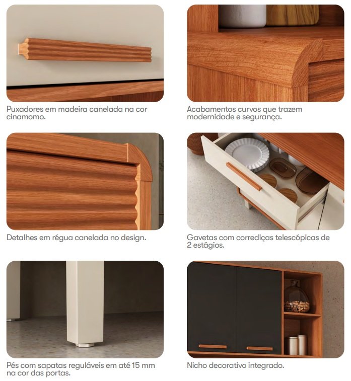 Kit Cozinha Dunas 1,40 m Cinamomo/Off White – ITATIAIA