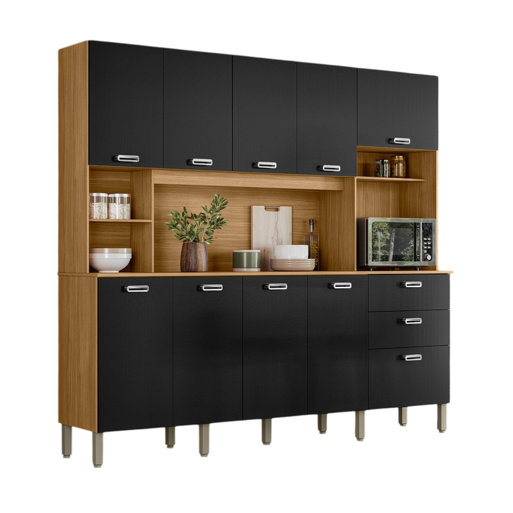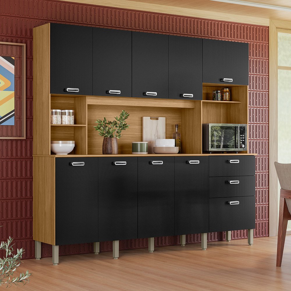 Kit Cozinha Intense 2,22 m Freijó/Nero – KIT’S PARANÁ