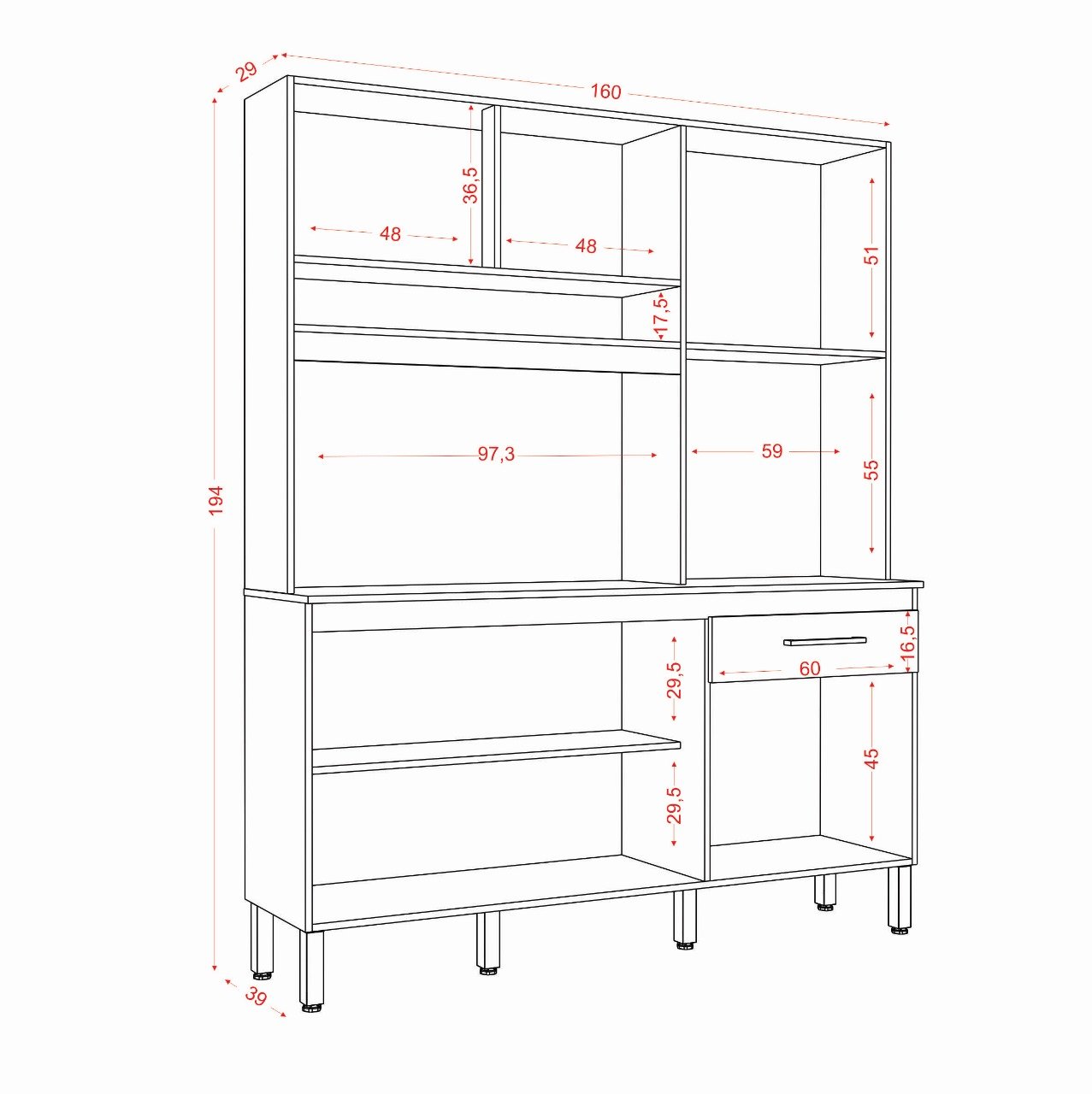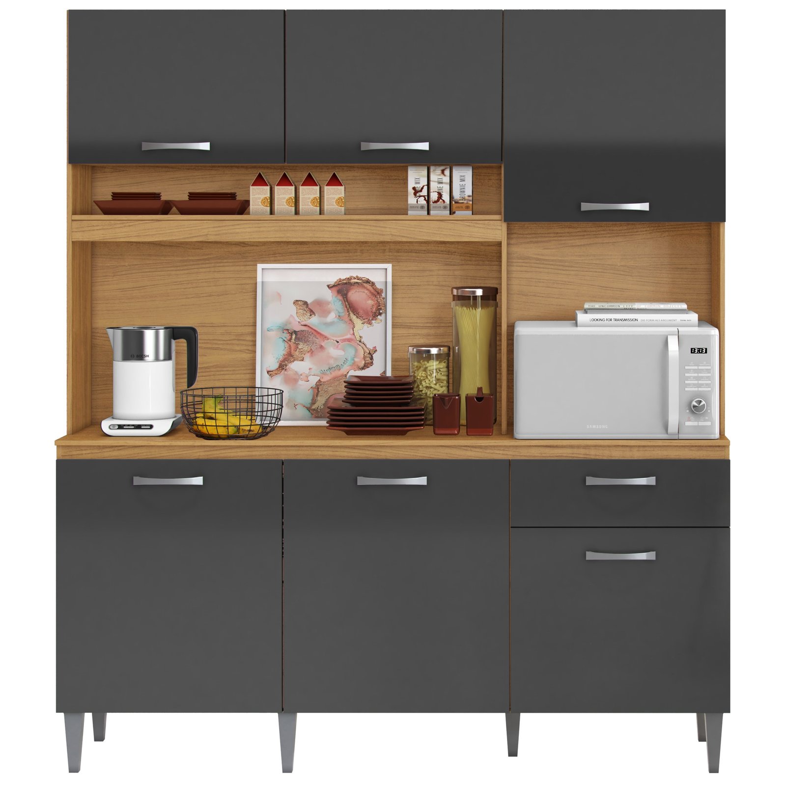 Kit Cozinha Siena 1,60 m Cinamomo/Grafite – ARAMÓVEIS