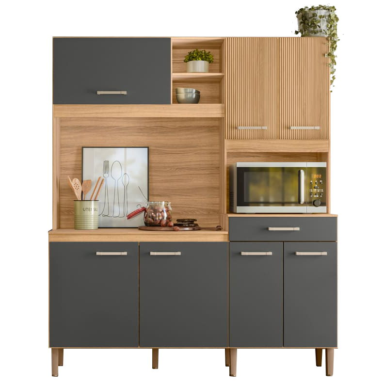 Kit Cozinha Yara 1,60 m Freijó/Chumbo/Ripado – NICIOLI