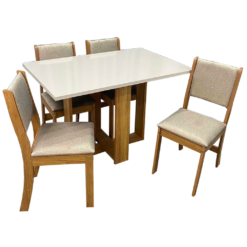 Mesa 4 Cadeiras Magic S Mel/Blonde/Linho Bronze – VIERO MÓVEIS