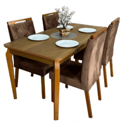 Mesa Alegra 120 Cinamomo com 4 Cadeiras Yasmim Veludo Marrom – JCM MOVELARIA + KM DECOR