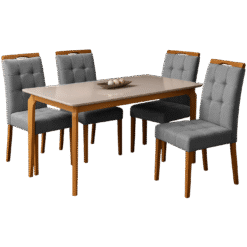 Mesa Alegra 120 Cinamomo/Off White com 4 Cadeiras Sophia Veludo Cinza Grafite – JCM MOVELARIA + WM DECOR