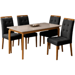 Mesa Alegra 120 Cinamomo/Off White com 4 Cadeiras Sophia Veludo Preto – JCM MOVELARIA + WM DECOR
