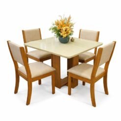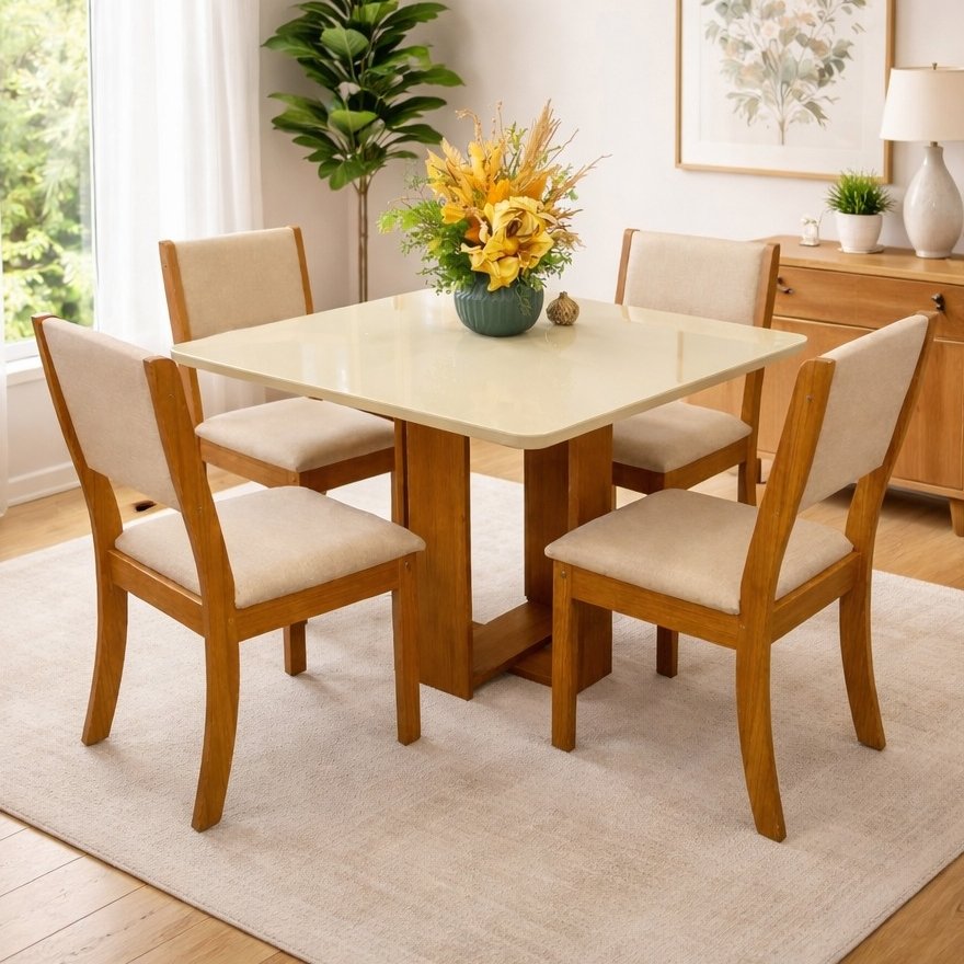 Mesa Anjo 90 Mel/Blonde com 4 Cadeiras Sol Linho Bronze – VIERO MÓVEIS