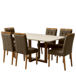 Mesa Atlas Mel/Off White Canto Copo 160×80 com 6 Cadeiras Sophia Veludo Marrom – ART ASSENTOS + WM DECOR