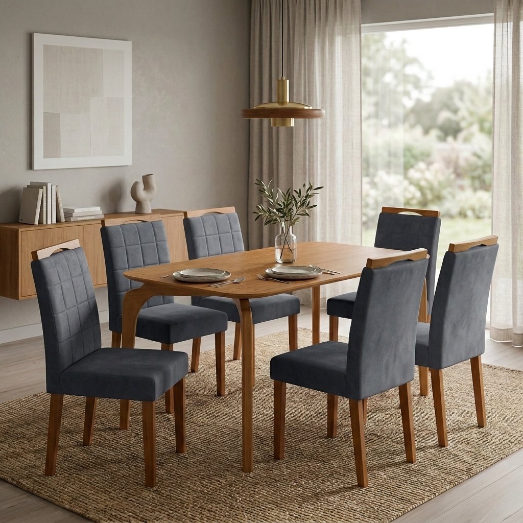 Mesa Capri 160 (S/Vidro) Laminado Natural com 6 Cadeiras Las Vegas Veludo Cinza Grafite 10 – MÓVEIS VALVERDE + OURO DECOR