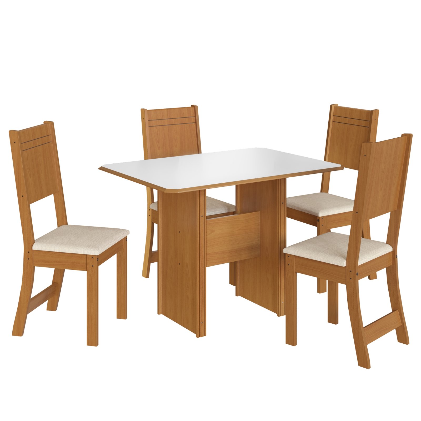 Mesa Évora 110 Freijó/Off White com 4 Cadeiras Lisboa Linho Bege – INDÉKES