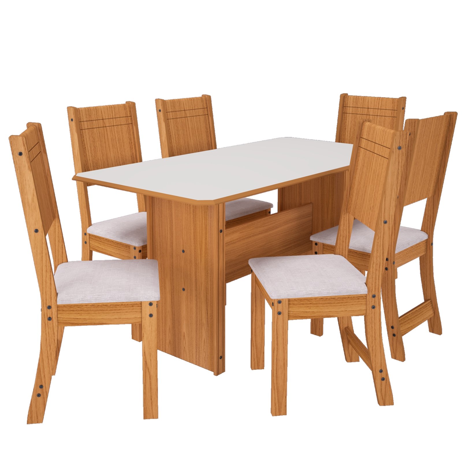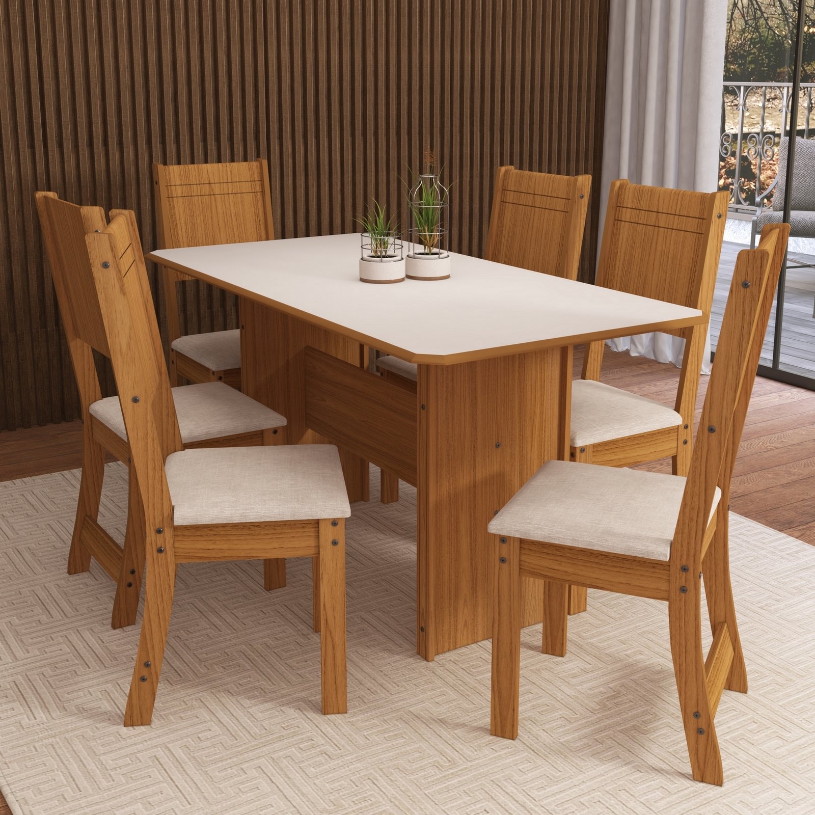Mesa Évora 150 Freijó/Off White com 6 Cadeiras Lisboa Linho Bege – INDÉKES