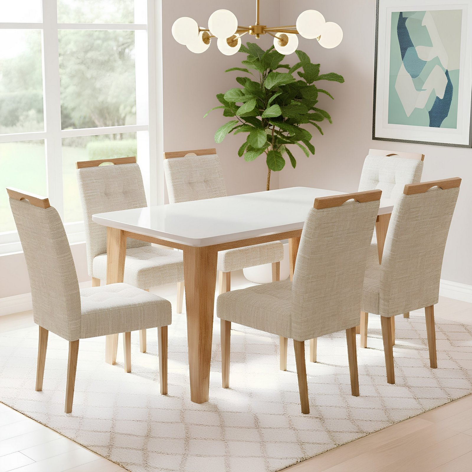 Mesa Kota/Dakota 160 Mel/Blonde Off White Com 6 Cadeiras Sophia linho Bege 200 – VIERO MÓVEIS + WM DECOR