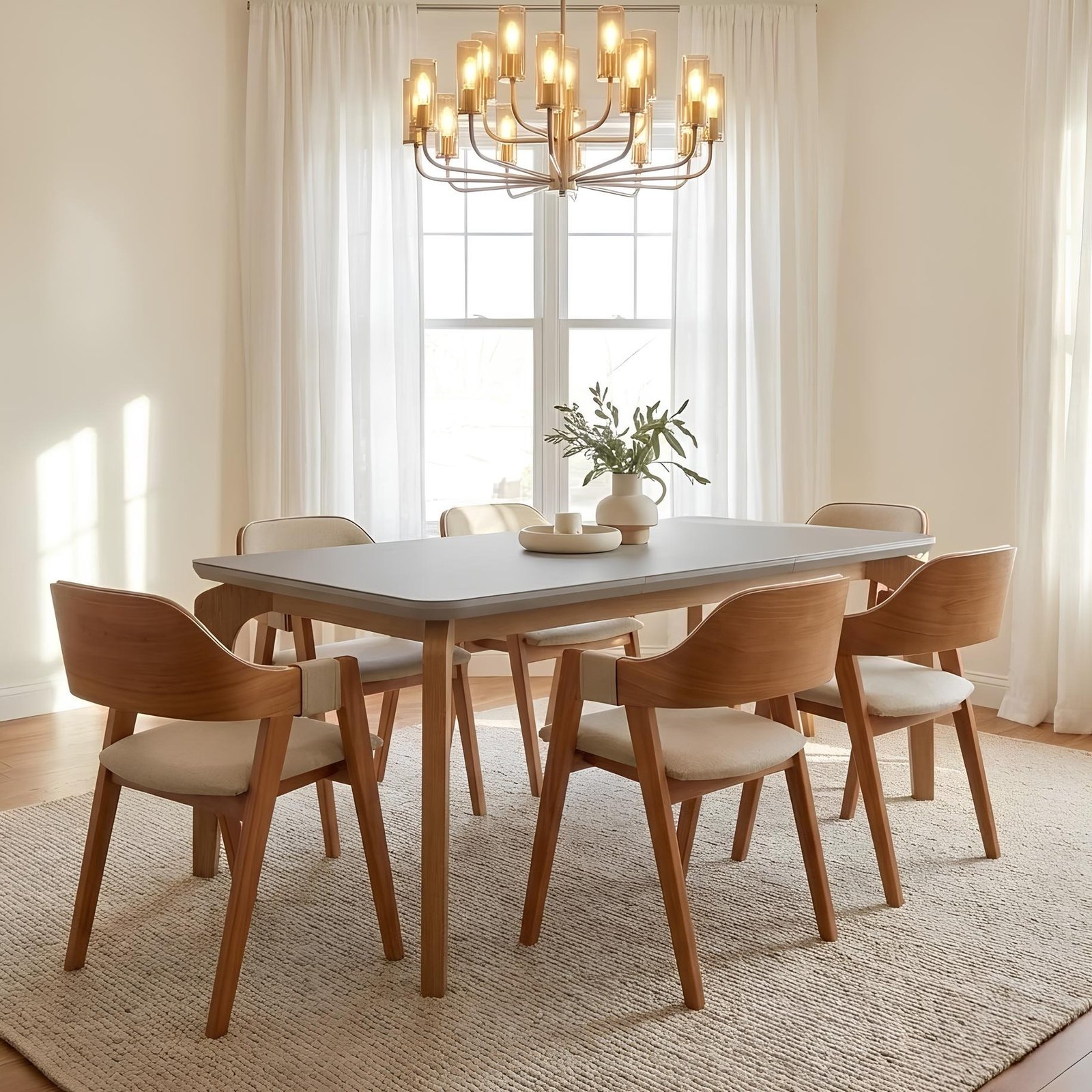 Mesa Londrina 180 Naturale/Off White com 6 Cadeiras Pérola Linho Areia– RUFATO + WJ DECOR
