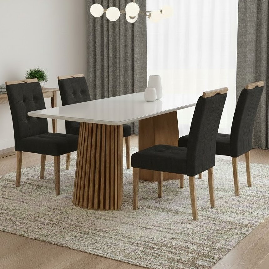 Mesa Nevada 120 (Tampo Smart Plus) Cinamomo/Off White com 4 Cadeiras Sophia Veludo Preto – CEL MÓVEIS + WM DECOR