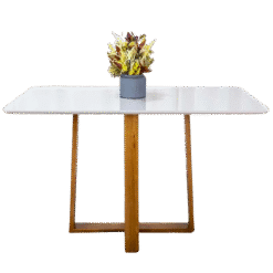 Mesa Pedro 120 Mel/Off White com 4 Cadeiras Gênova Veludo Marrom – ART ASSENTOS