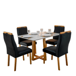 Mesa Pedro 120 Mel/Off White com 4 Cadeiras Gênova Veludo Preto – ART ASSENTOS