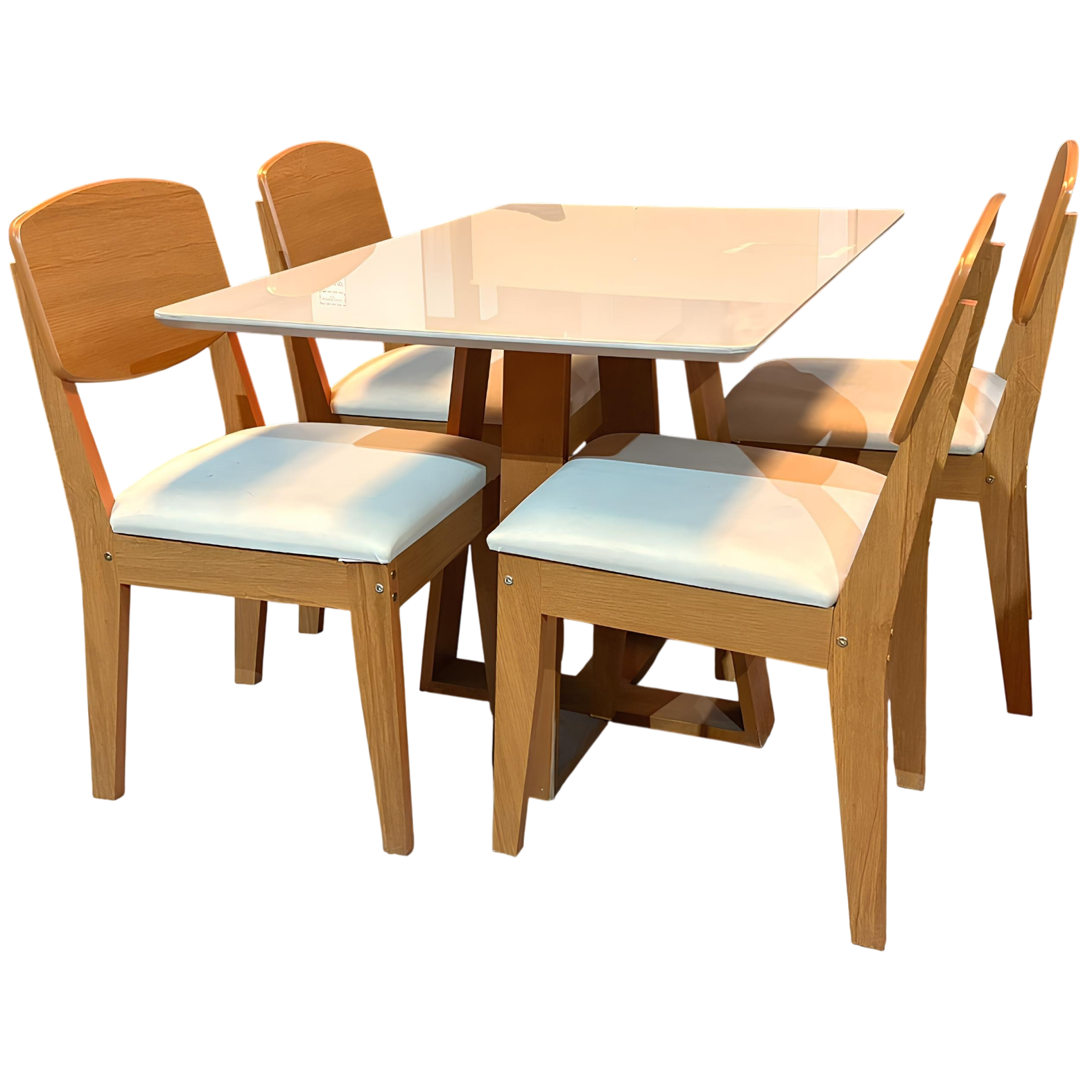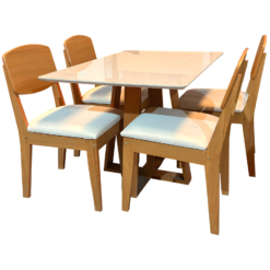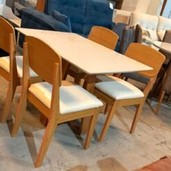 Mesa Pedro 120 Mel/Off White com 4 Cadeiras Havana Veludo Creme – ART ASSENTOS + RUFATO