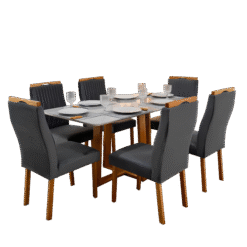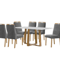 Mesa Pedro 160 Mel/Off White com 6 Cadeiras Gênova Veludo Grafite – ART ASSENTOS
