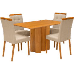 Mesa Recife 120 Cinamono Laminado com 4 Cadeiras Sophia Linho Bege 200 – CEL MÓVEIS + WM DECOR