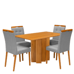 Mesa Recife 120 Cinamono Laminado com 4 Cadeiras Sophia Linho Cinza Grafite 202 – CEL MÓVEIS + WM DECOR