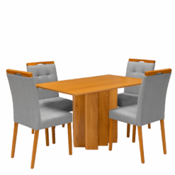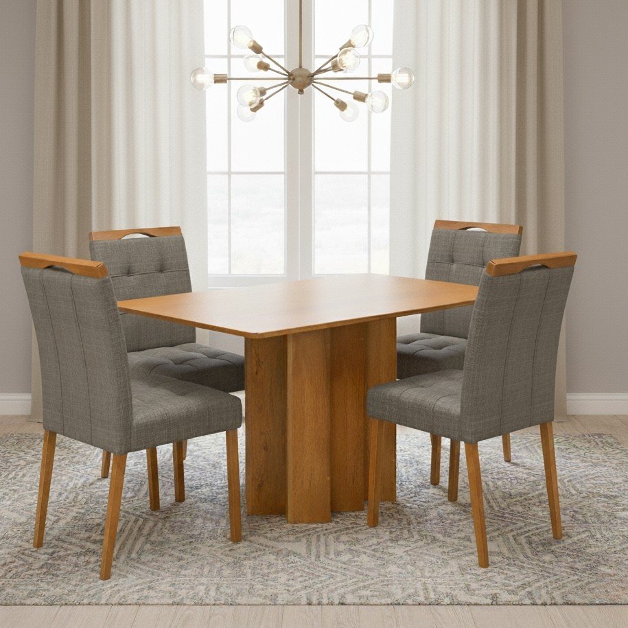 Mesa Recife 120 Cinamomo Laminado com 4 Cadeiras Sophia Linho Cinza Grafite 206 – CEL MÓVEIS + WM DECOR