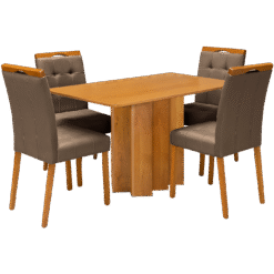 Mesa Recife 120 Cinamomo Laminado com 4 Cadeiras Sophia Veludo Marrom – CEL MÓVEIS + WM DECOR