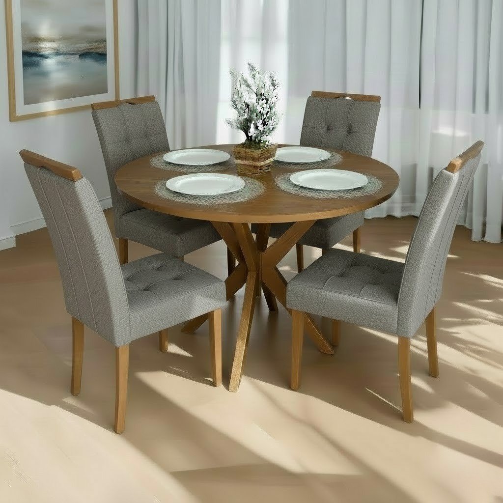 Mesa Redonda Simpatia 108 Cinamomo com 4 Cadeiras Sophia Linho Cinza Grafite 206 – JCM MOVELARIA + WM DECOR