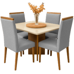 Mesa Salinas 120 Cinamomo/Off White com 4 Cadeiras Samantha 05 Veludo Cinza Prata 1013 – AVALON DECOR + CARVALHO DECOR