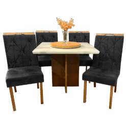 Mesa Salinas 120 Cinamomo/Off White com 4 Cadeiras Yasmim Veludo Preto – AVALON DECOR + KM DECOR