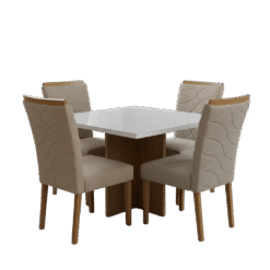 Mesa Salinas/Helô/Los Angeles 90 Cinamomo/Off White com 4 Cadeiras Safira Veludo Bege – AVALON DECOR + WM DECOR