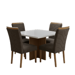 Mesa Salinas 90 Cinamomo/Off White com 4 Cadeiras Safira Veludo Marrom – AVALON DECOR + WM DECOR