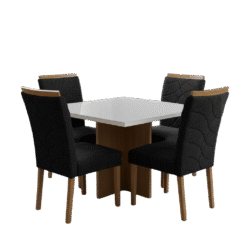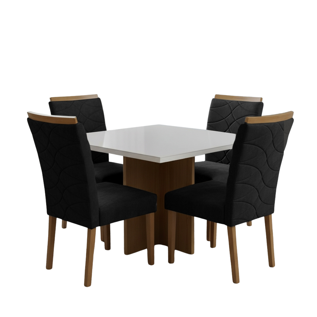 Mesa Salinas 90 Cinamomo/Off White com 4 Cadeiras Safira Veludo Preto – AVALON DECOR + WM DECOR