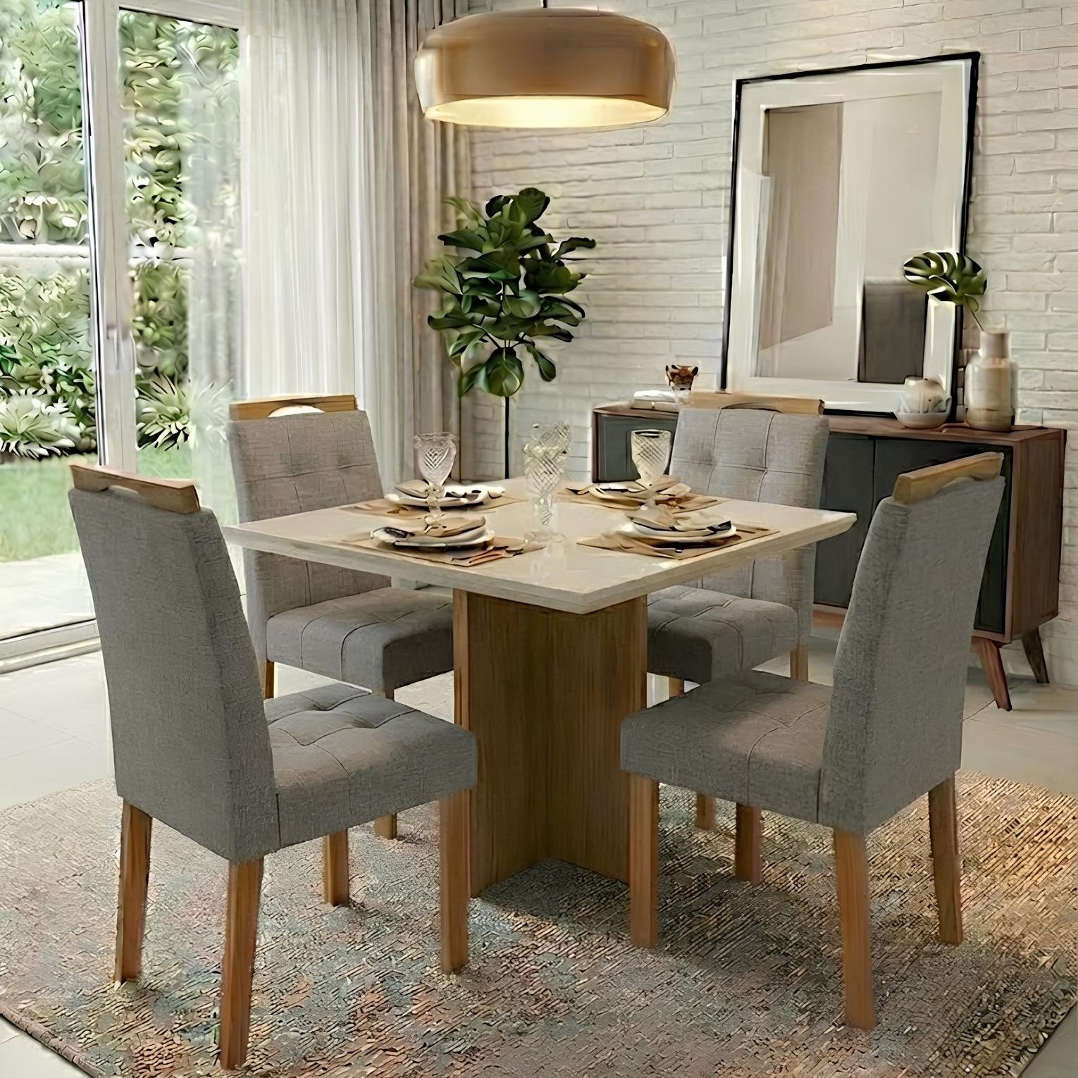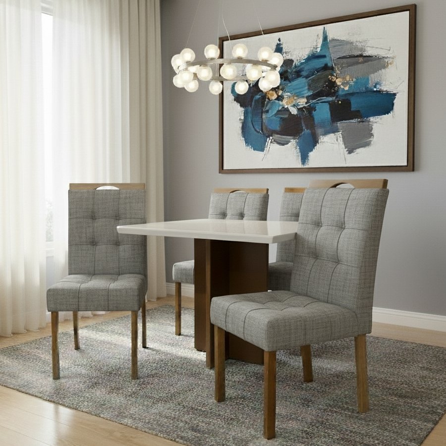 Mesa Salinas/Helô/Los Angeles 90 Cinamomo/Off White com 4 Cadeiras Sophia Linho Cinza Grafite 206 – CEL MÓVEIS + WM DECO