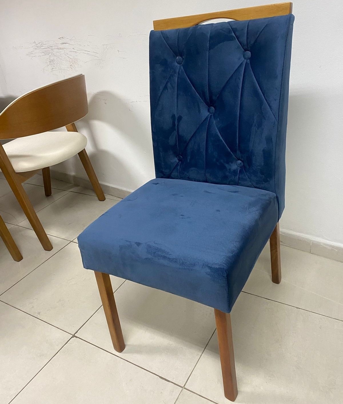 – Assento e encosto em veludo azul