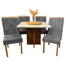 Mesa Salinas 90 Cinamomo/Off White com 4 Cadeiras Yasmim Veludo Cinza Grafite – AVALON DECOR + KM DECOR