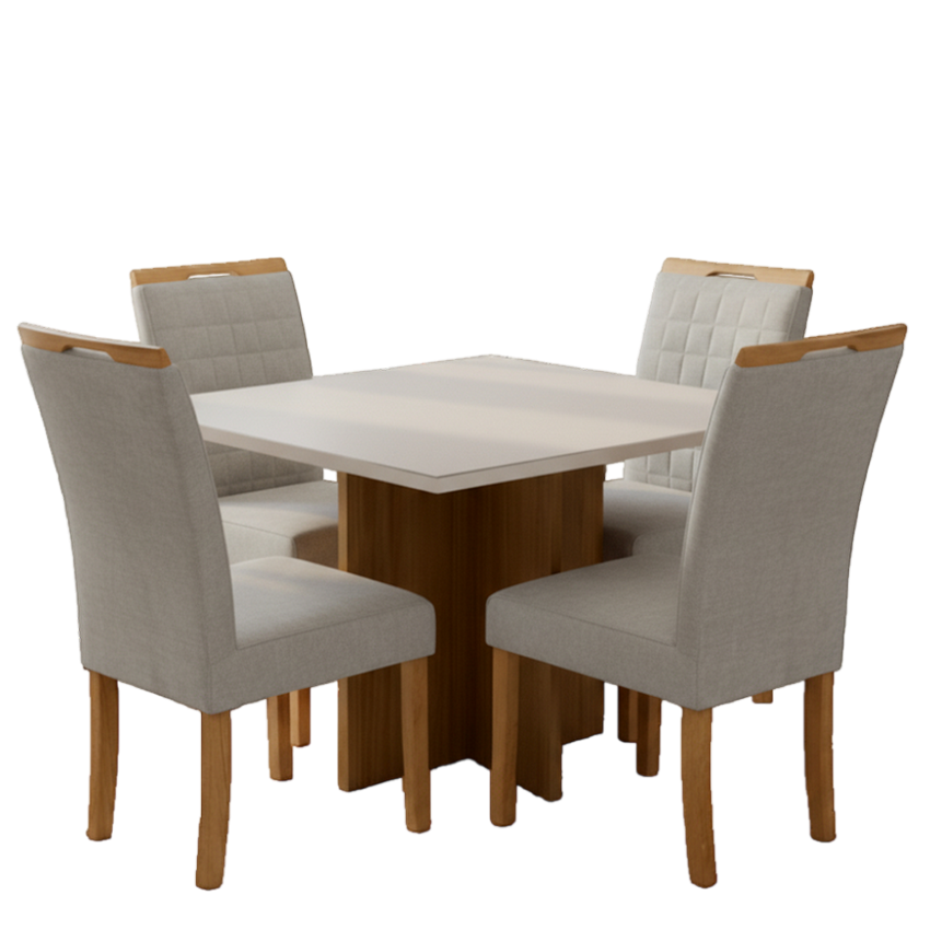 Mesa Salinas 90 Cinamomo/Off White com Cadeiras Pandora 01 Veludo Cinza Prata 127 – AVALON DECOR + CARVALHO DECOR