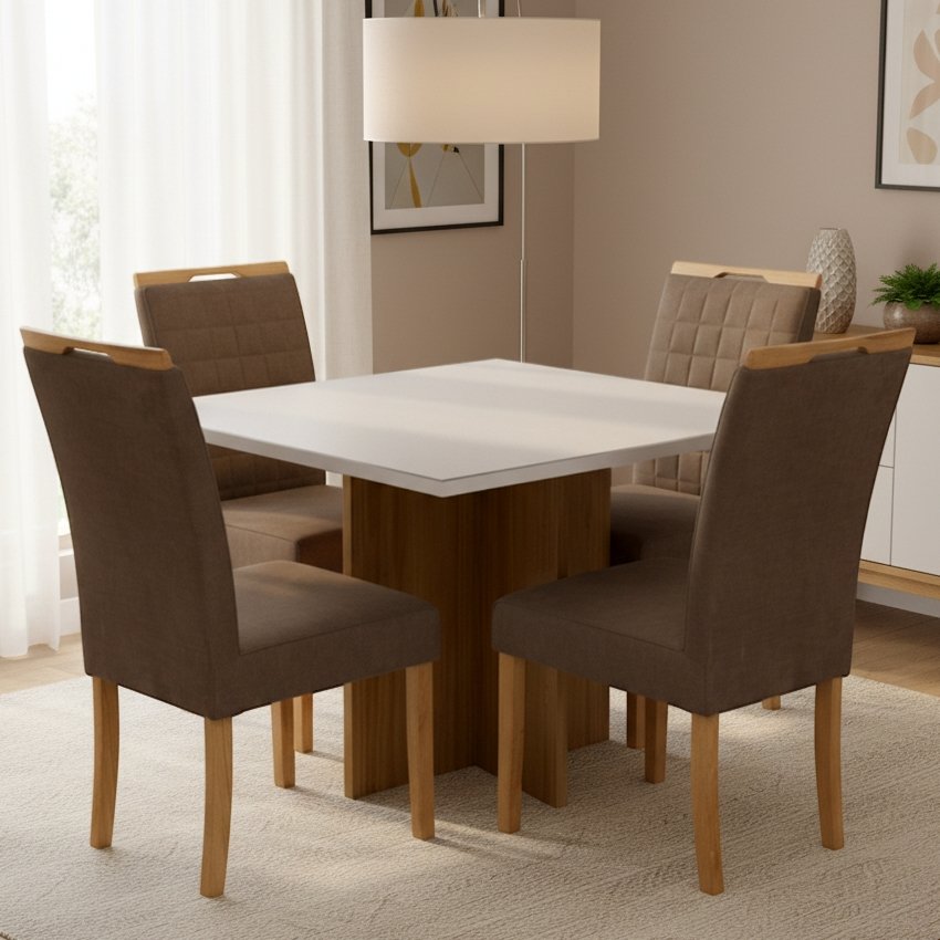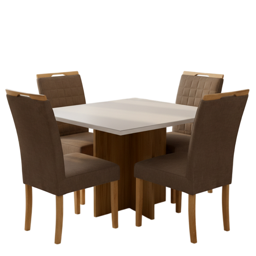 Mesa Salinas 90 Cinamomo/Off White com Cadeiras Pandora 01 Veludo Marrom 134 – AVALON DECOR + CARVALHO DECOR