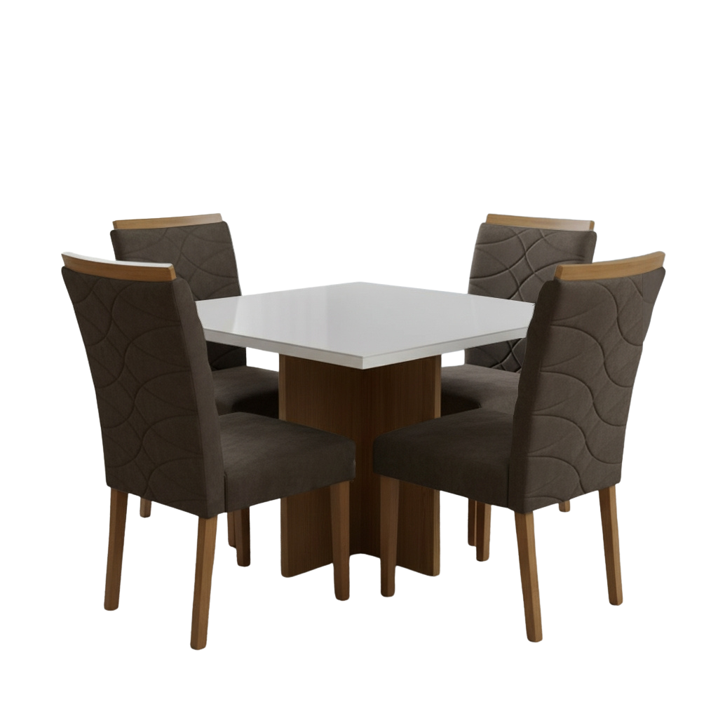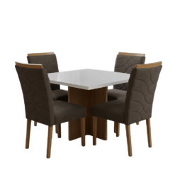 Mesa Salinas/Helô/Los Angeles 120 Cinamomo/Off White com 4 Cadeiras Safira Veludo Marrom – CEL MÓVEIS + WM DECOR