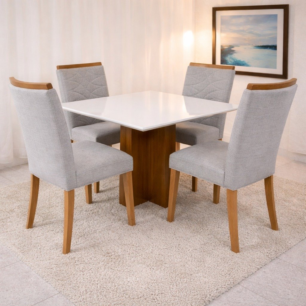Mesa Salinas/Helô/Los Angeles 90 Cinamomo/Off White com 4 Cadeiras Safira Linho Cinza Grafite 206 – CEL MÓVEIS + WM DECOR