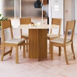 Mesa Talita 0,918 m Freijó/Off White com 4 Cadeiras Karla Linho Bege – INDÉKES