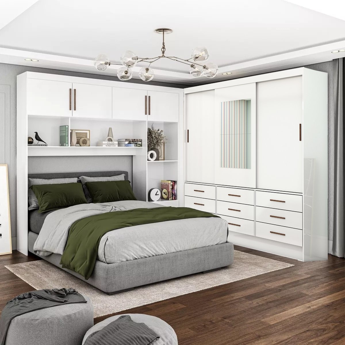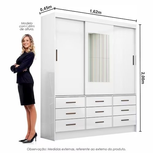 Modulado 4 Portas + Guarda-Roupa 3 Portas Sevilha (Com espelho) Branco – CARIOCA MÓVEIS