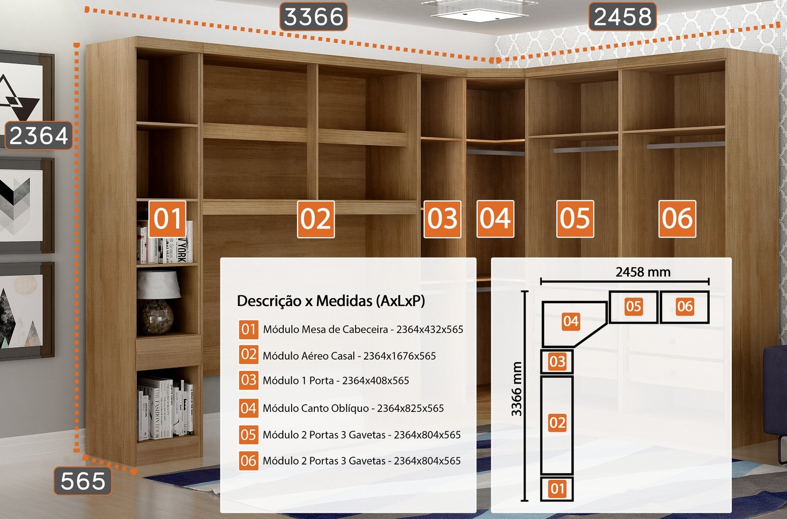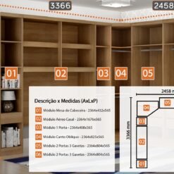 Modulado Casal/Queen 6 módulos Rizon (Dois Módulos 2 Pts + Criado + Módulo 1 Pt + Canto Oblíquo + Aéreo 1.67)