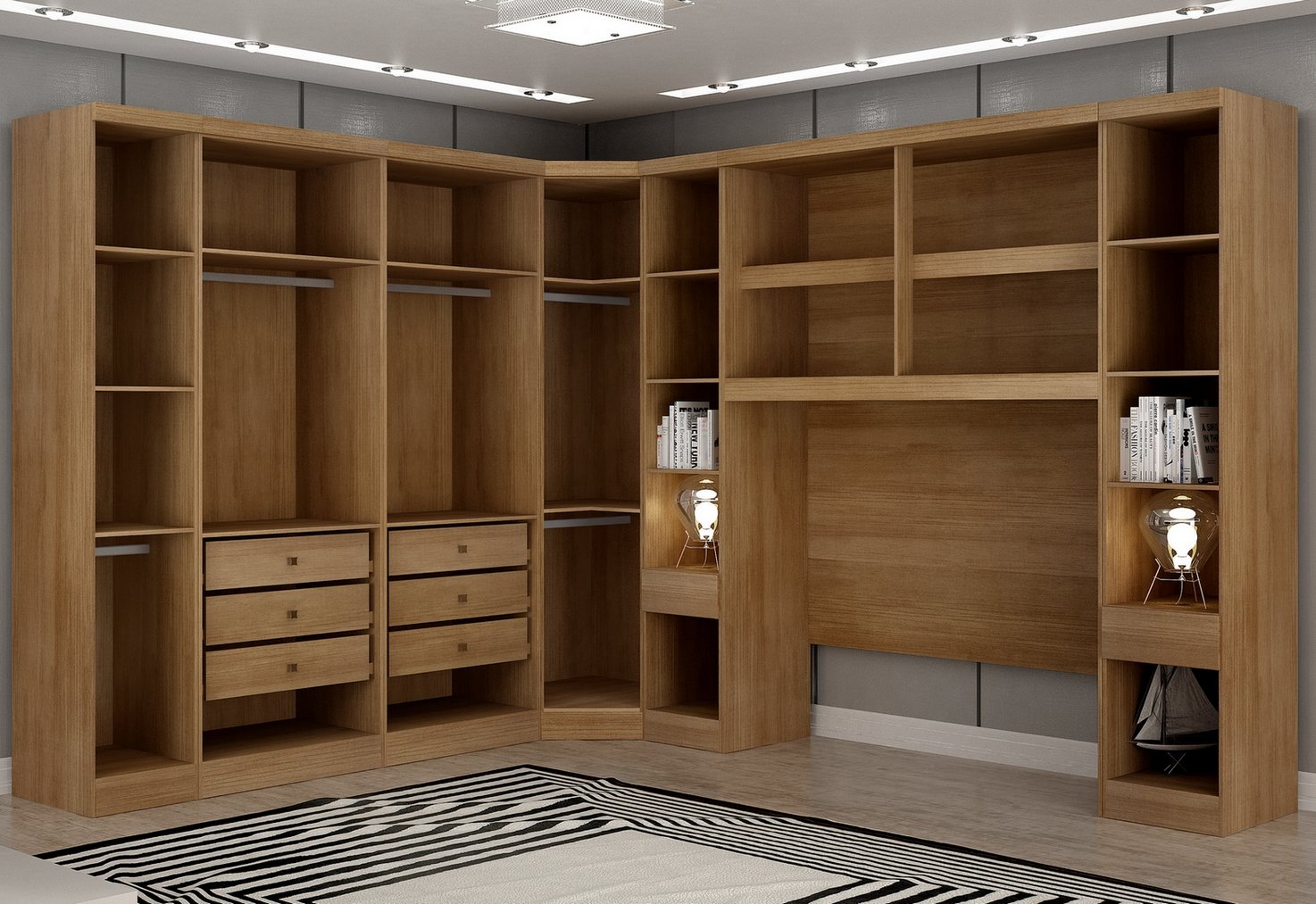 Modulado Casal/Queen 7 módulos Rizon (Dois Módulos 2 Pts + Dois Criado + Módulo 1 Pt + Canto Oblíquo + Aéreo 1.67) Cumaru/Fendi – NOVO HORIZONTE