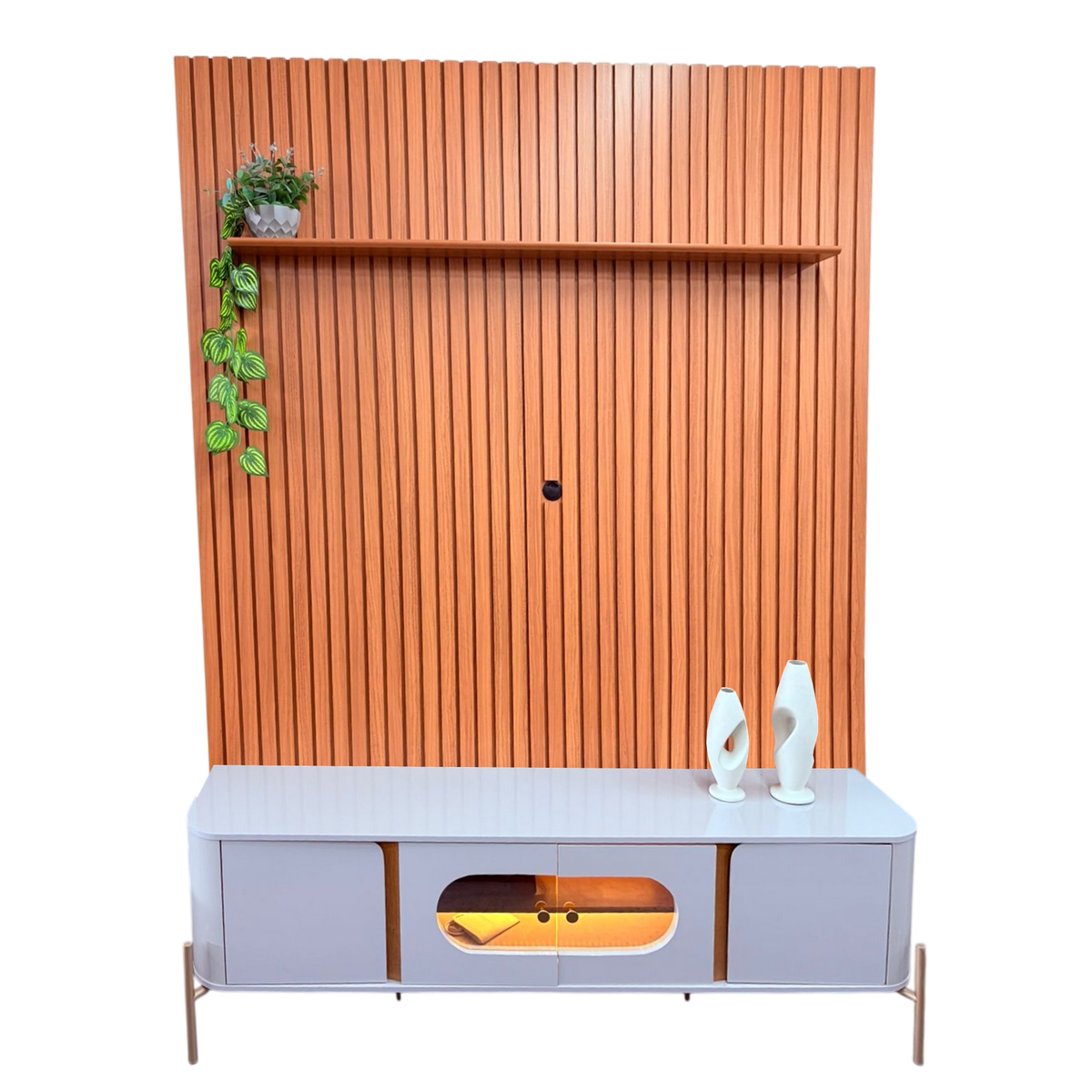 Painel até 75″ Arbo 1.9 Cedro + Rack Juquehy Off White/Naturale – EDN MÓVEIS + BECHARA